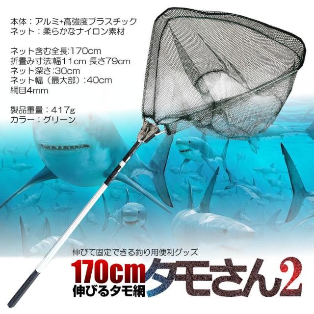 2個セット 釣り用 伸縮式 タモさん2 180cm タモ網 玉網 すくい網 コンパクト ワンタッチネット 折りたたみ 釣具 青物 タモ網 タモ釣り フィッシング 漁 TAMOSAN f0621-11a