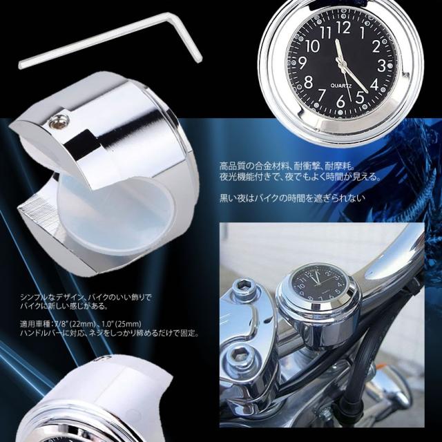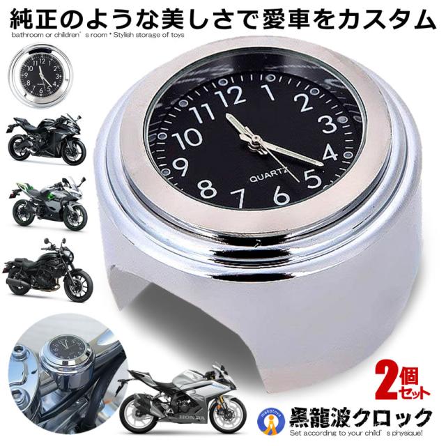 2個セット バイク 時計 オートバイ ツーリング バイク用品 バイクアクセサリ アナログ時計 夜光 ハンドルバー ダイヤル時計 電池式 取付簡単 自転車 KOCLOCK f0824-16a