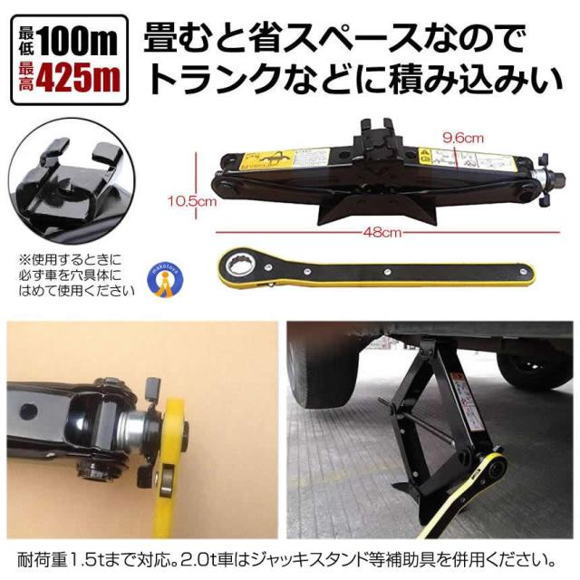 2個セット ジャッキ 車 タイヤ交換 パンタジャッキ パンタグラフ シザージャッキ 1.5t ジャッキアップ ホイル交換 手動 外装 タイヤ カー用品 ガレージ GTJACK kf1018-53a