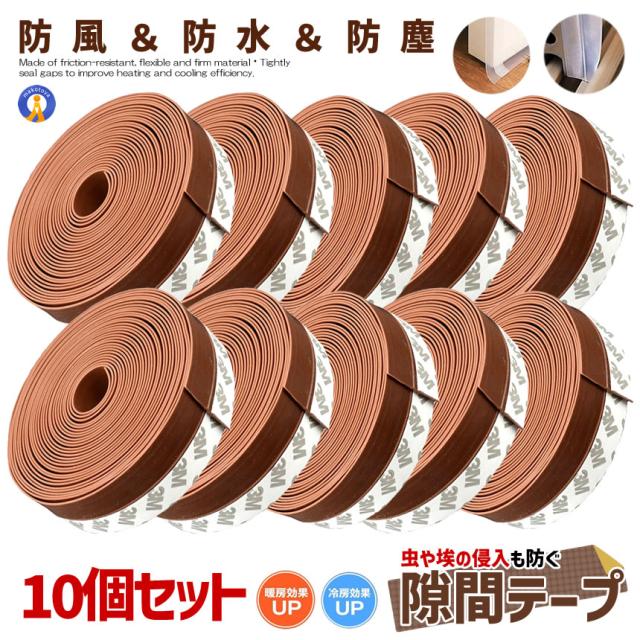 10個セット 隙間テープ ブラウン 6m ドア 窓 すきま 防止 暑さ 寒さ 騒音 防音 風防止 ホコリ 花粉 防止 暖房効果 冷房効果 節電 テープ 2-SUKITAPE-BR kg0705-2a