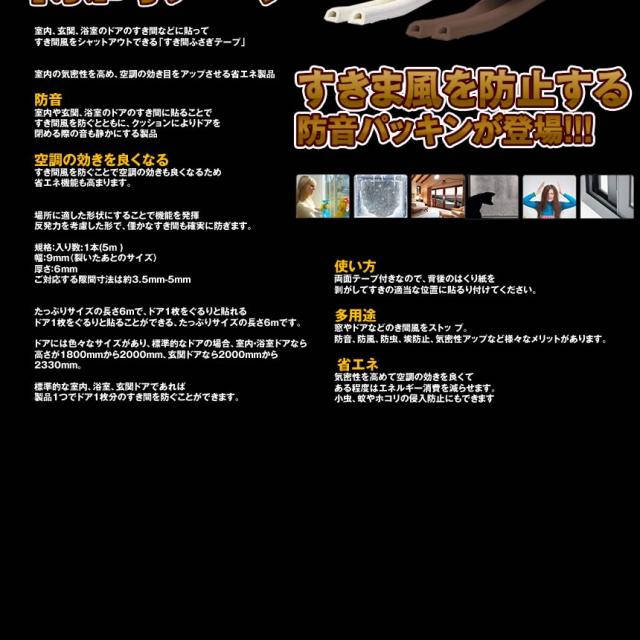 防音テープ:隙間を埋める事で、ドアの隙間からの