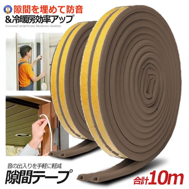 2個セット 隙間テープ ブラウン 5m 引き戸 窓 ゴム 防音 防水 ドア すきま風防止 防音パッキン 引き戸 窓 扉 玄関用すきま テープ 修理 修繕 SUKITEPA-BR kg0905-12a