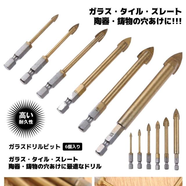 5個セット ガラスドリルビット 6個入り ガラス タイル スレート ガラス・タイル用ドリルビット 陶器 ガラスカッター DIY ステンドグラス 彫刻 GLADORI kg1012-24a