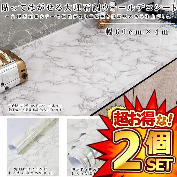 2個セット リメイクシート 壁紙 大理石 簡単 60cm×4m 模様替え 撥水 白 はがせる 補修 キッチン リビング 洗面所 トイレ テーブル はっ水 DAIRISEKI-HANA m-kh1019-61a