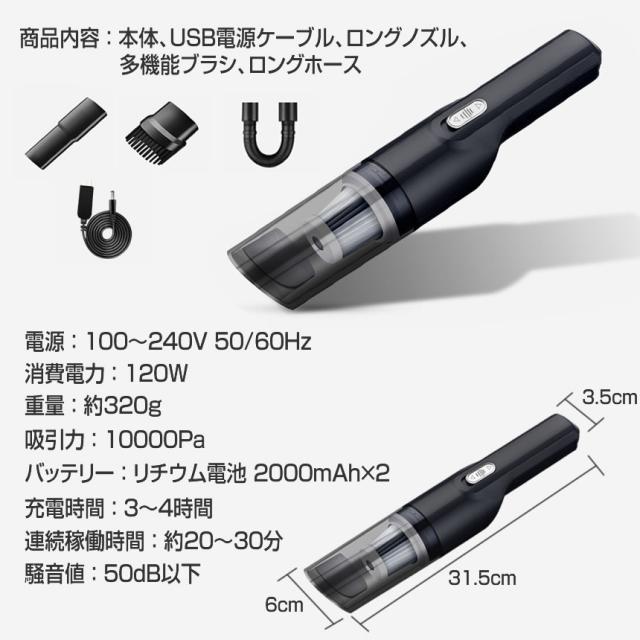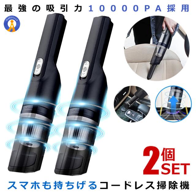 2個セット ハンディクリーナー コードレス 強力 車 充電式 掃除機 ハイパワー ハンディ掃除機 車載用 軽量 ミニ掃除機 紙パック不要 乾湿両用 HIPOWER m-ki1023-11a