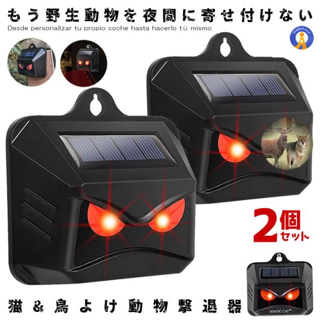 2個セット 動物撃退器 ソーラー ライト点滅 猫よけ 鳥よけ 防犯 ネズミ コウモリ イノシシ フラッシュライト 獣害 キャンプ場 果樹園 猫除け 害鳥駆除 MAJICAT m-mi1201-11a