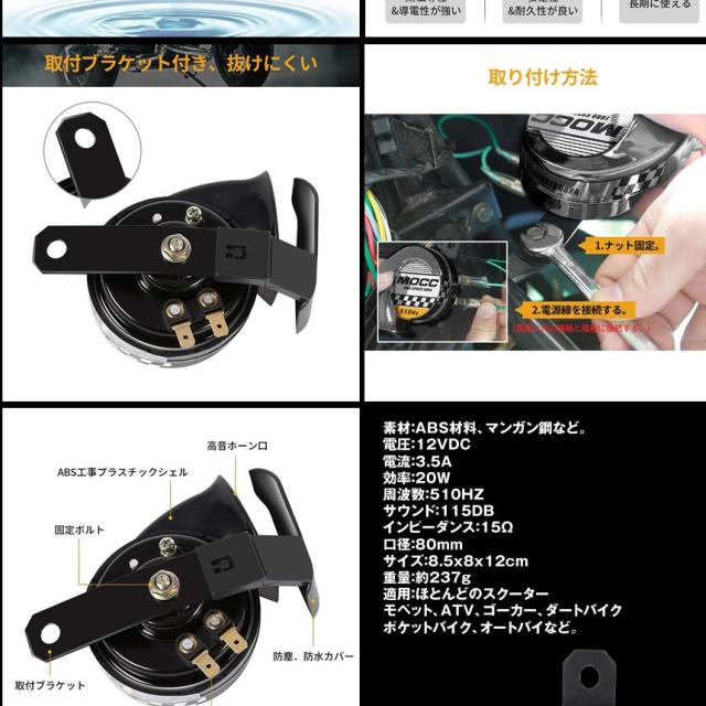 2個セット バイク 迫力 ラッパ ギガ ホーン ラッパ 高音 警告 オートバイ 12V車 二輪車 クラクション カスタム ドレスアップ 汎用 115DB スクーター RAPGA mg0117-12a