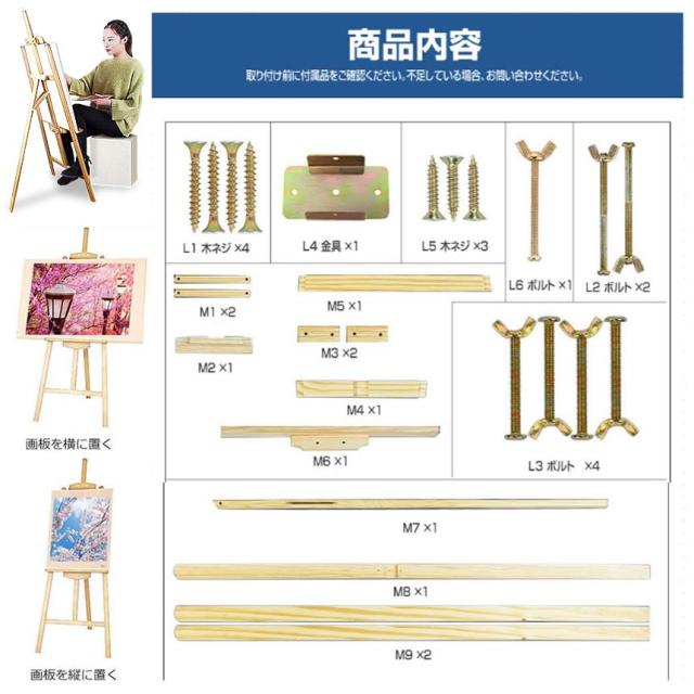 5個セット イーゼル スタンド ナチュラル 胡桃色 木製イーゼル 150CM 高さ調節可能 三脚 デッサン アート 美術 スケッチ 写生 看板 絵画 カフェ EZELA-NA s-kh0717-15a