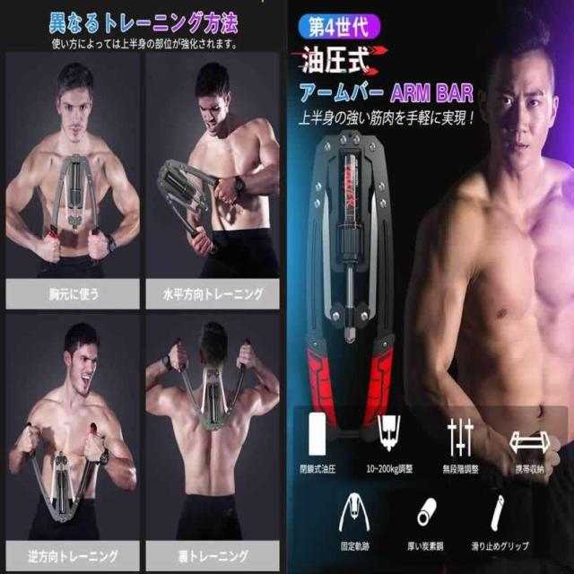 【超強い上半身トレーニング】この小さなアームバーを使えば、上半身の丈夫な体が得られます。大胸筋を中心に上腕二頭筋、三角筋(肩)、腹筋、腕筋、背筋上部など上半身の筋トレができる、家トレ用の最新式アームバーです。ムバーに対して、第4世代の油圧式アームバーはシームレス溶接技術を採用しています。安全性、耐久性、安定性にかかわらず、製品には非常に大きな向上があります。