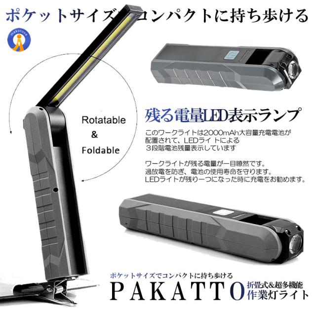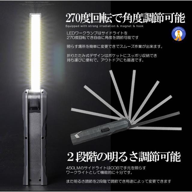 2個セット 折り畳み式 パカッと LED 作業灯 3モード点灯 マグネット COB ワークライト ハンディ USB充電式 懐中電灯 高輝度 回転フック 夜間 明るい ORIBARL s-kj2207-15a