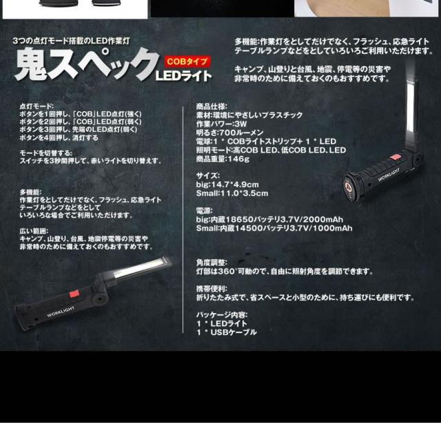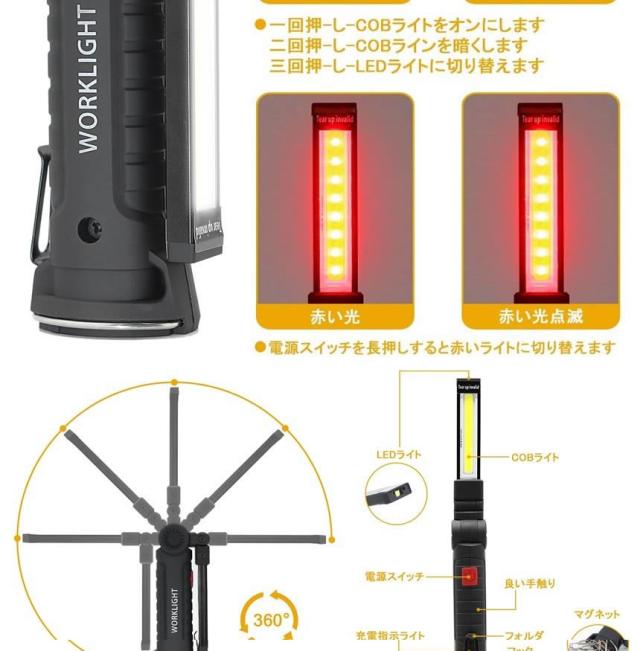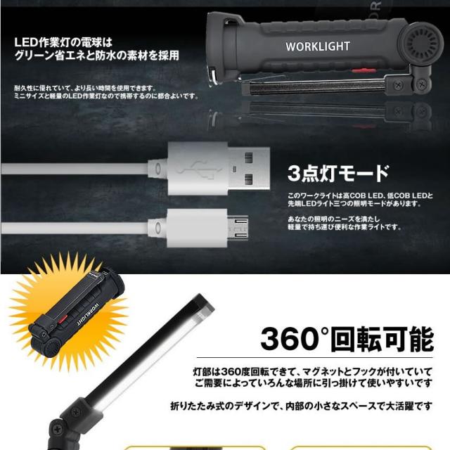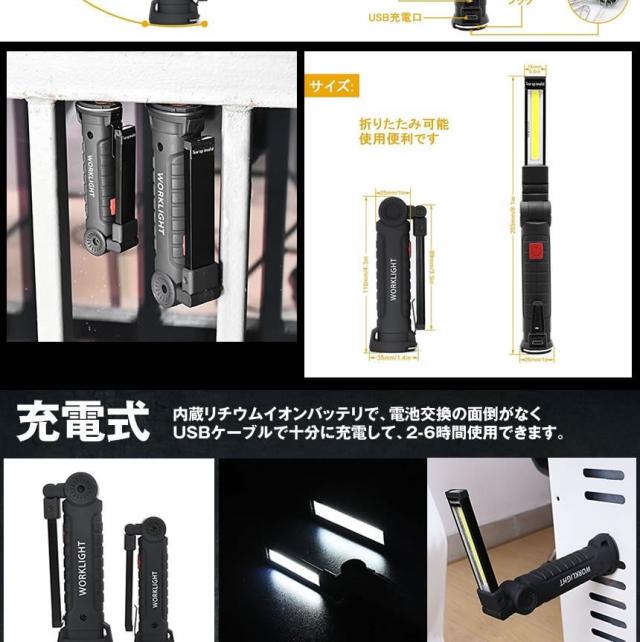 5個セット ハイスペック LEDライト Mサイズ COB LED作業灯 折畳み式 USB充電式 ワークライト 防水 多機能 懐中電灯 360度回転 夜間 明るい ONISPL-M s-kj2210-30a