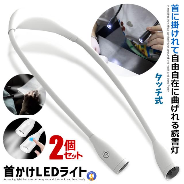 2個セット 首かけライト ホワイト LED ネックライト 360度調整可能 自由自在 アウトドア ランプ ランニング ウォーキング 作業ライト USB充電 KUBIRAIS-WH s-mh0721-15a