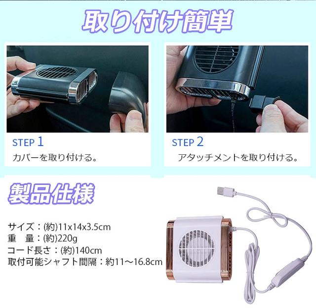 2個セット 扇風機 車 ヘッドレスト取付 蒸れ 湿気 車載 風量調節 爽快 前後部座席用 USB給電 ファン 車用品 カーファン 車内 夏対策 蒸れ対策 車中泊 SOFARAN