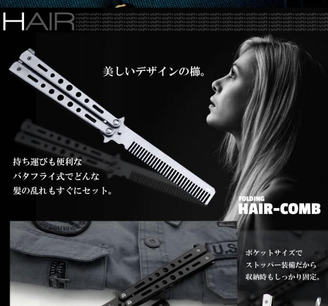 バタフライナイフ型 くし 櫛 髪 セット 美しい デザイン 持ち運び 携帯 コンパクト ポケットサイズ ストッパー 美容 おしゃれ 散髪 女性男性 BAKUSHI