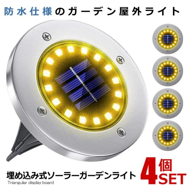 埋め込み式 ライト 4個セット ソーラーガーデン 電球色 昼白色 20LED 埋め込み 置き型 屋外 防水 玄関 屋外照明 イルミネーションライト 太陽光 4-DEMEKO