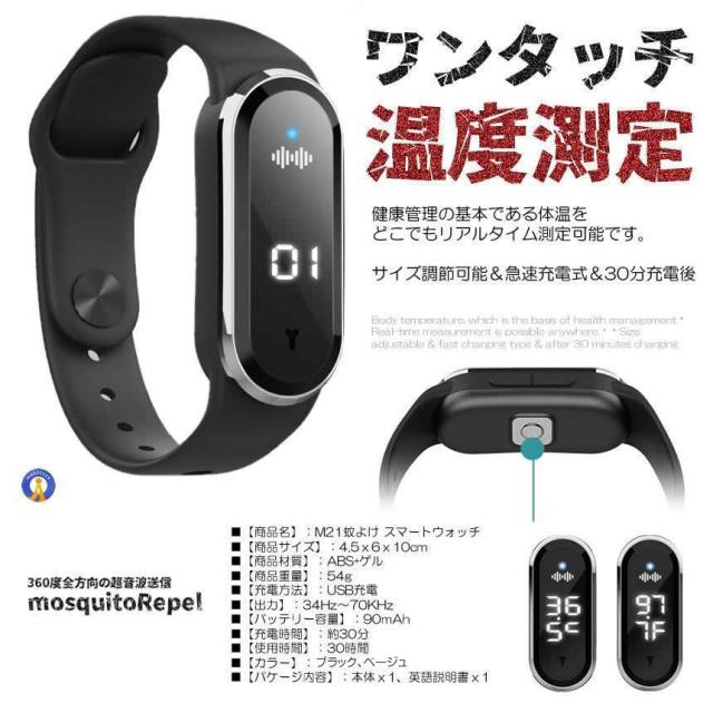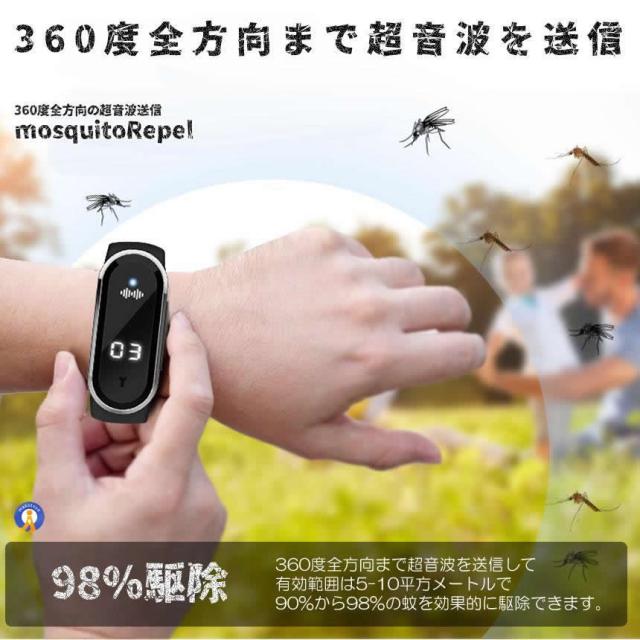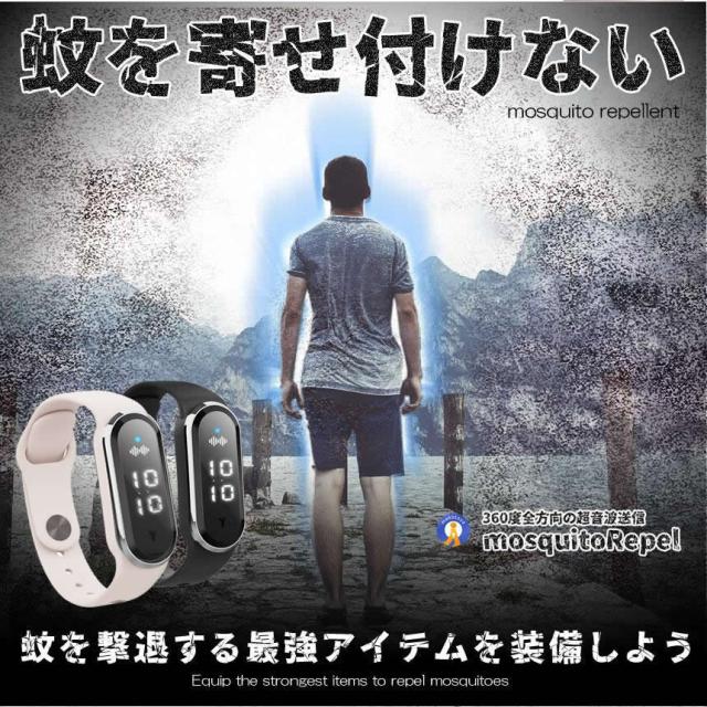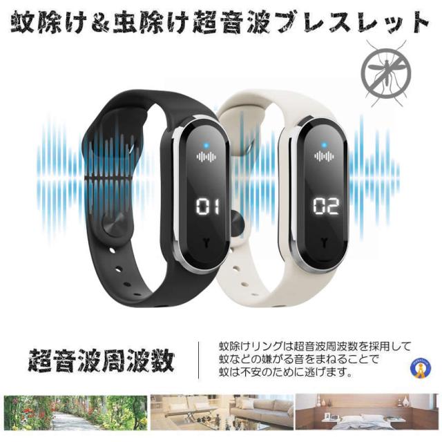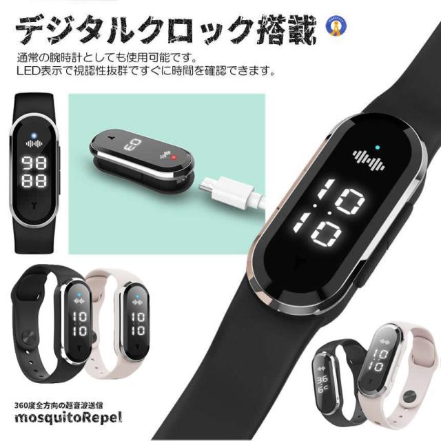 2個セット 蚊よけブレスレット 虫よけリング 超音波 超音波指数 腕時計 温度計 デジタルクロック 虫刺され 充電 虫よけ 肌対策 害虫対策 子供 大人 KABURERA