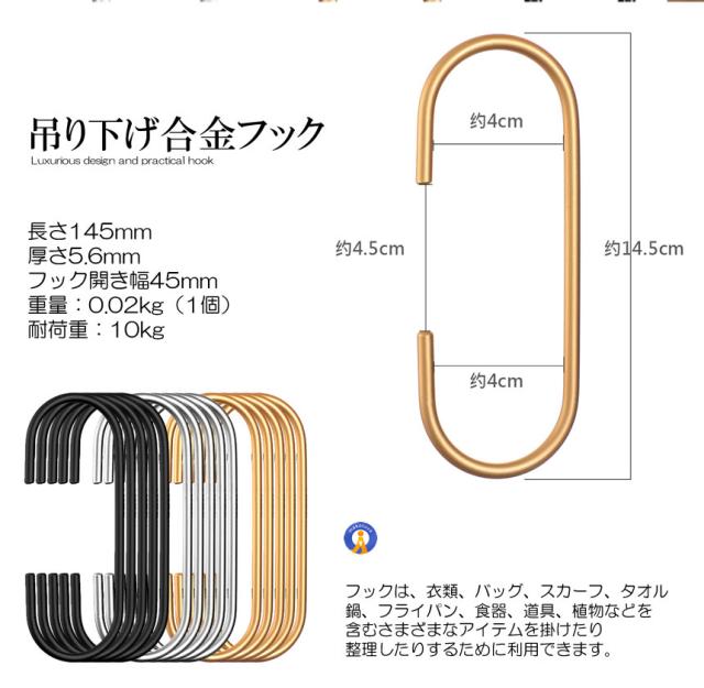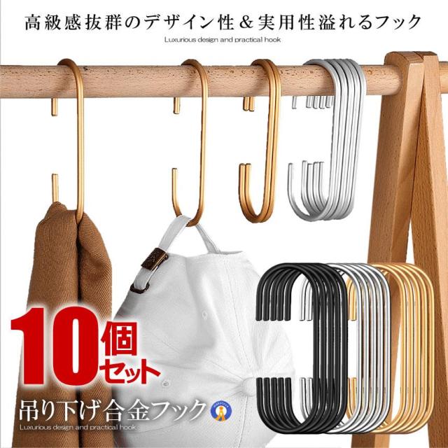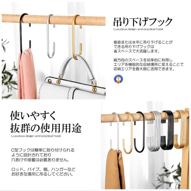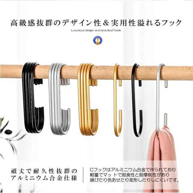 10個セット 高級感 ハンガーフック C字 クローゼット 耐久性 合金 アルミ 収納 お洒落 取り付け簡単 整理 整頓 衣類 バッグ 帽子 タオル 屋内 屋外 CFUKKU