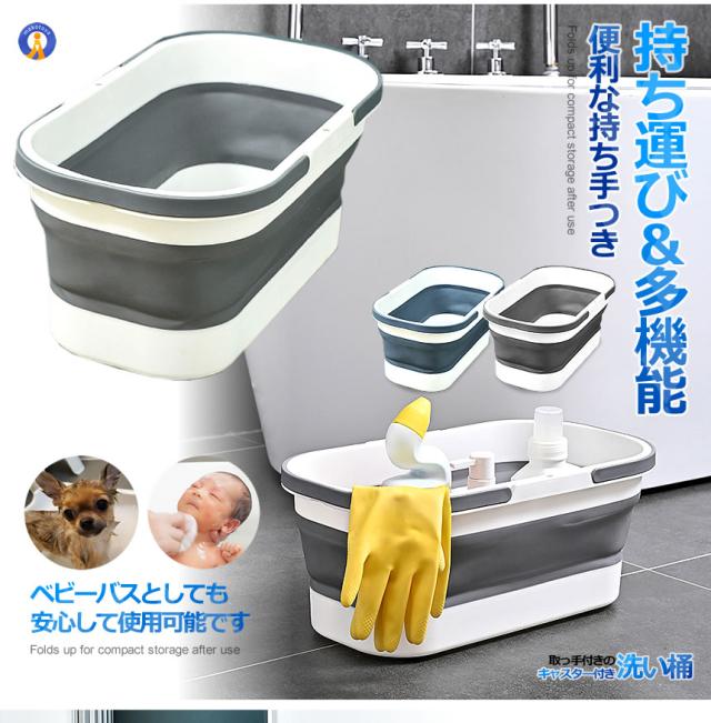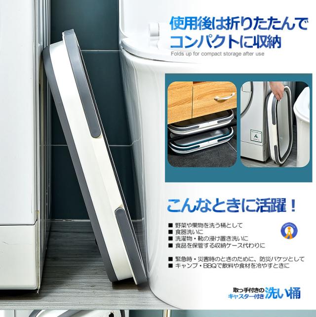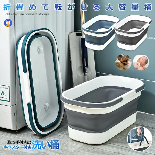 キャスター付き 折りたたみ桶 ソフトタブ ワイド 洗い桶 沐浴 赤ちゃん 壁掛け お風呂 ペット タライ お風呂用桶 大型 柔らか素材 アウトドア バケツ KYASORI