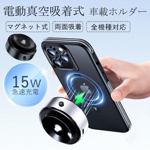 スマホホルダー 車載ホルダー 車 ワイヤレス充電器 車載充電器 マグネット magsafe スマホスタンド 吸盤 電動真空吸着 携帯ホルダー 超強吸着力 全機種対応