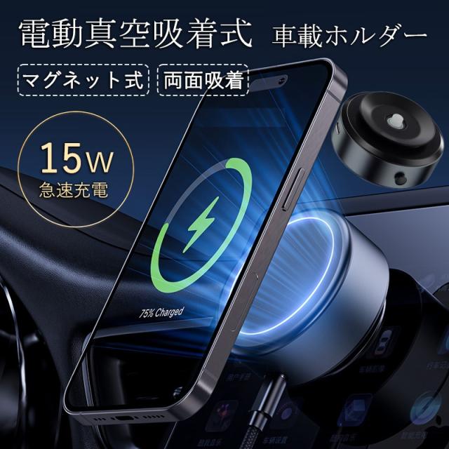 スマホホルダー 車載ホルダー 車 ワイヤレス充電器 車載充電器 マグネット magsafe スマホスタンド 吸盤 電動真空吸着 携帯ホルダー 超強吸着力 全機種対応