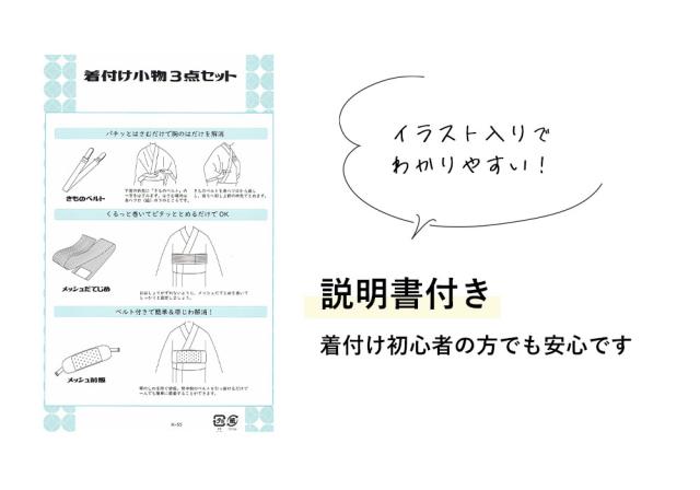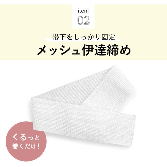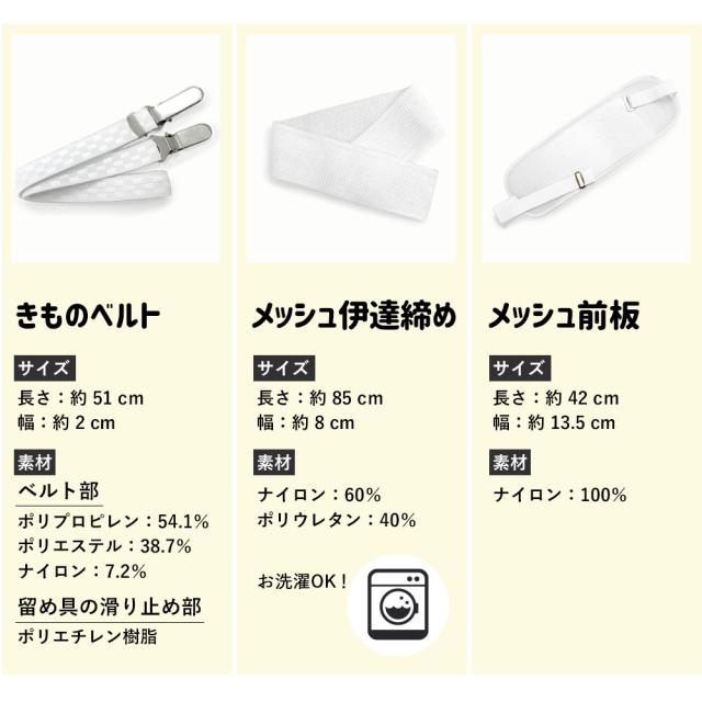『きものベルト』『メッシュ伊達締め』『メッシュ前板』の3点セット。
