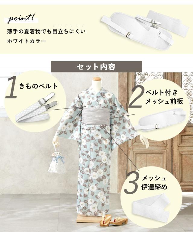 【2個までメール便送発送OK】浴衣 着付けセット 簡単 着付け 小物 3点セット 夏 メッシュ 涼しい 白 きものベルト 伊達締め ベルト付き 前板 帯板 レディース 夏着物 和装