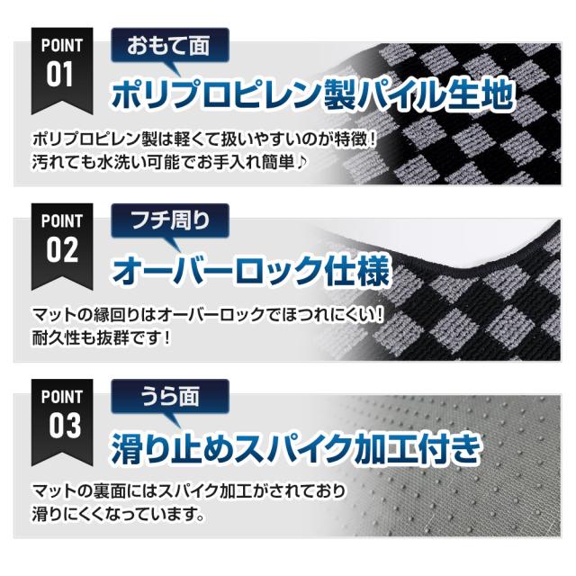 オシャレな黒とチェック柄のマットで車内の雰囲気がガラリと変わってイメージチェンジにも♪ インテリアとしても優秀なのはもちろんですが、機能性もばっちり! 車種専用だから車の形状にぴったりフィットして、トランク側面への汚れや傷をしっかりカバーします。 裏面には滑り止めのスパイク加工済みです。 ■安心の国内提携工場にて製造 国内の提携工場にて熟練の職人が手作業で製作しています。 安価な商品には無い仕上がりをお届けいたします。 |