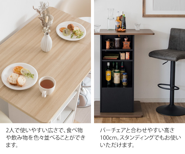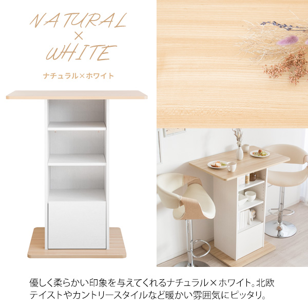 バーテーブル サイドテーブル オープンラック ナイトテーブル リビングテーブル ダイニングテーブル おしゃれ シンプル コンパクト ナチュラル ホワイト 北欧 モダン Baron(バロン) 幅85cm 高さ100cm 2色対応