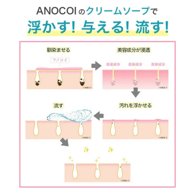 泡立てて擦る必要もありません。ANOCOIで正しいケアをして自信が持てるカラダになりましょう。