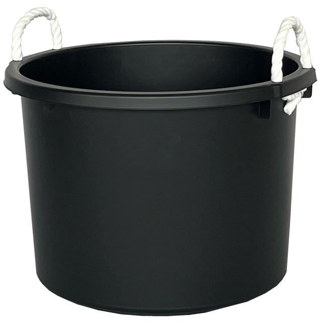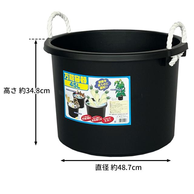 たらい 万能容器 45L ブラック | 日本製 バケツ 大容量 水槽 黒 45リットル アウトドア 家庭菜園 用具入れ ロープ付き 金魚 メダカ 飼育 ビオトープ 持ち運び プラスチック マルチ タライ 収納