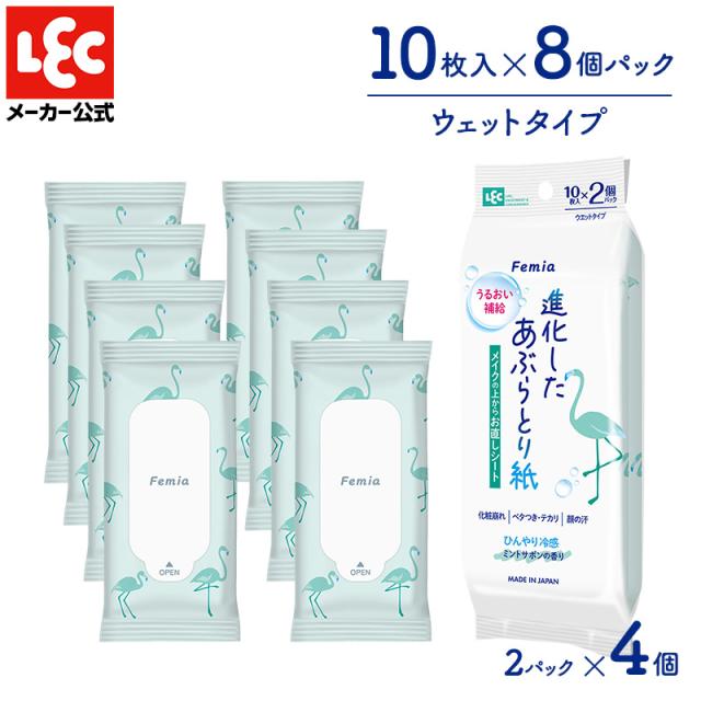 化粧直し メイク直し シート あぶらとり紙 化粧崩れ テカリ お直し 崩れ 皮脂 毛穴 メイク femia フェミア 10枚×8個 セット ミントサボン レック lec