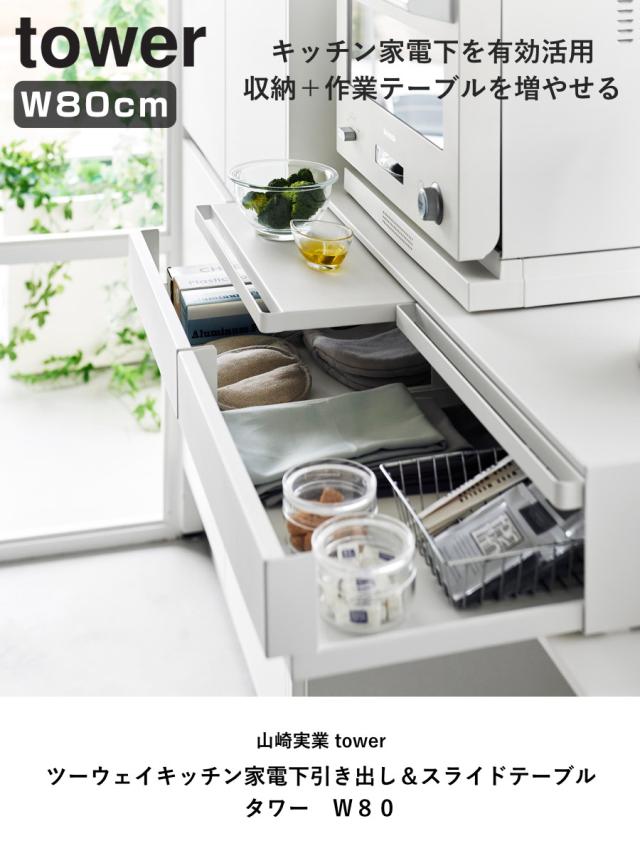 山崎実業 tower ツーウェイキッチン家電下引き出し&スライドテーブル タワー W80 ( 4903208016971 タワーシリーズ キッチン家電下収納 スライドテーブル 2WAY キッチン家電下スライドテーブル )