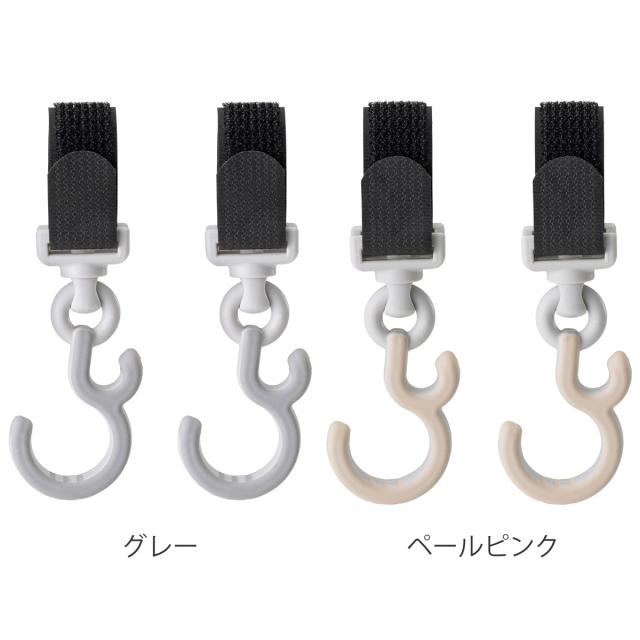 フック ベビーカー用 ダブルフック 同色2個入り ベルト式 滑り止め ( ベビーカーフック ベビーカー 鞄 荷物 2個セット 360度回転 かばん掛け 荷物掛け 無地 バギーフック 荷物フック バギー ペットバギー 車収納 カーフック )