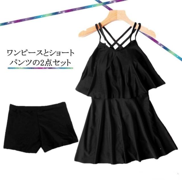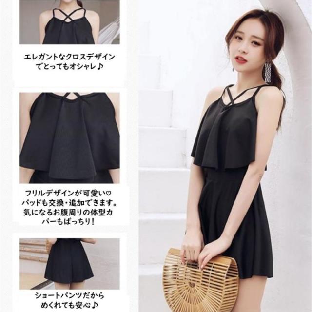 水着 レディース ワンピース 体型カバー パッド ショートパンツ 無地 海 プール リゾート オールインワン 肩出し 袖なし