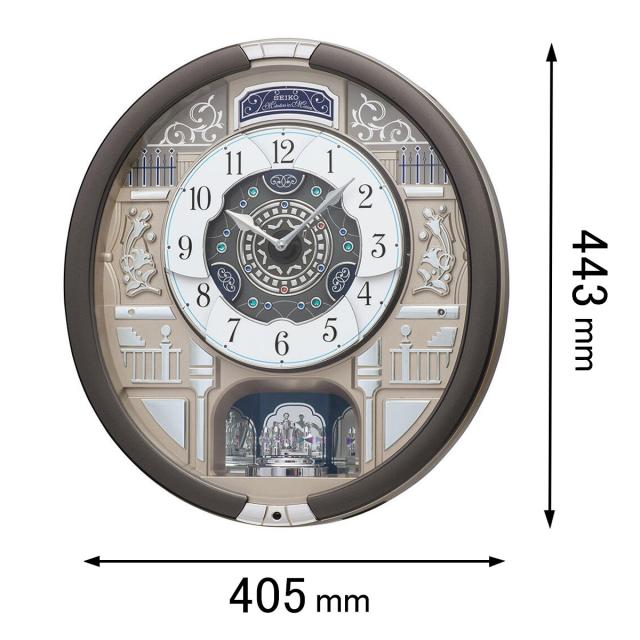 メロディに合わせてダイナミックに文字板が回転するからくり時計。
