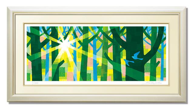 鳥 陽射し 朝日 絵画 版画 玄関 リビング 額入り 贈り物 待合室 会議室 運気が上がる絵 風水