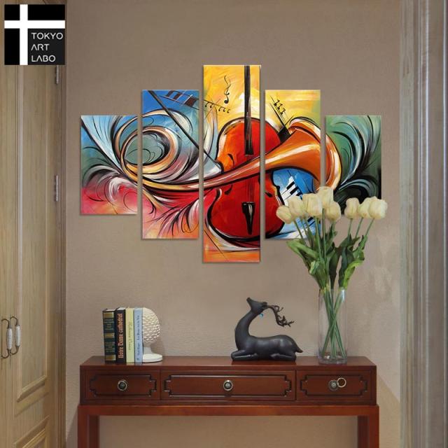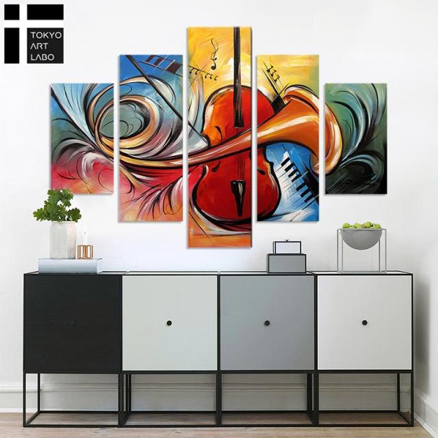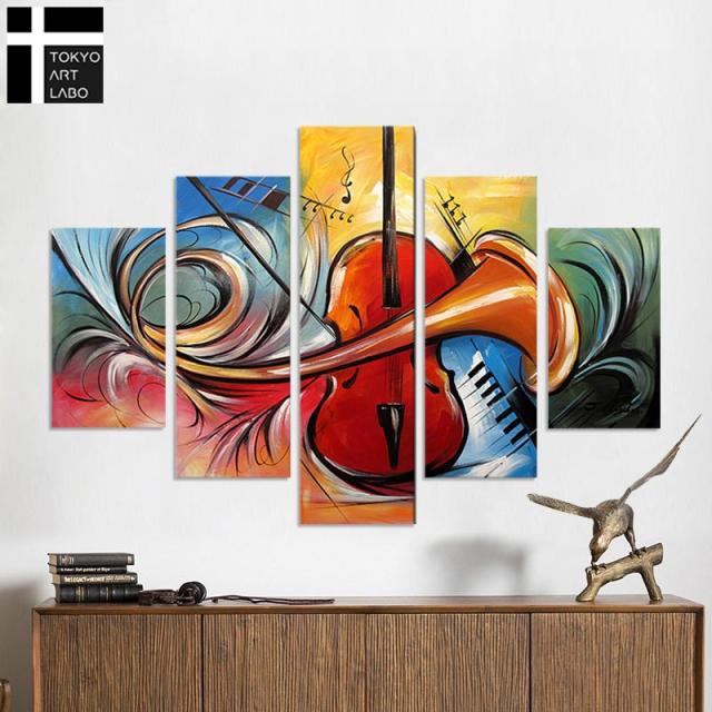 【楽天ランキング1位獲得】油絵 絵画 インテリア アートパネル モダン アート/チェロ 楽器 音楽をモチーフにした抽象画/ロビー リビング ホテルに飾る 法人向 壁面装飾 5枚組 油彩画