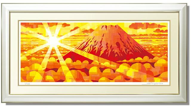 絵画 黄金赤富士 版画 玄関 リビング 額入り プレゼント お祝い 床の間 和室 洋間 壁 アート インテリア 母の日