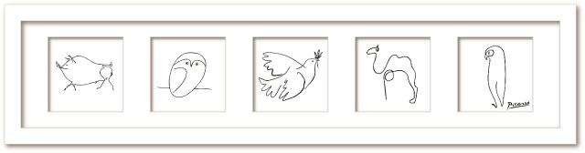 モダンインテリア ピカソ ドローイング アート フレーム The Camel Silkscreen ラクダ Le Pingouin ペンギン ハト 子豚 梟 現代アート