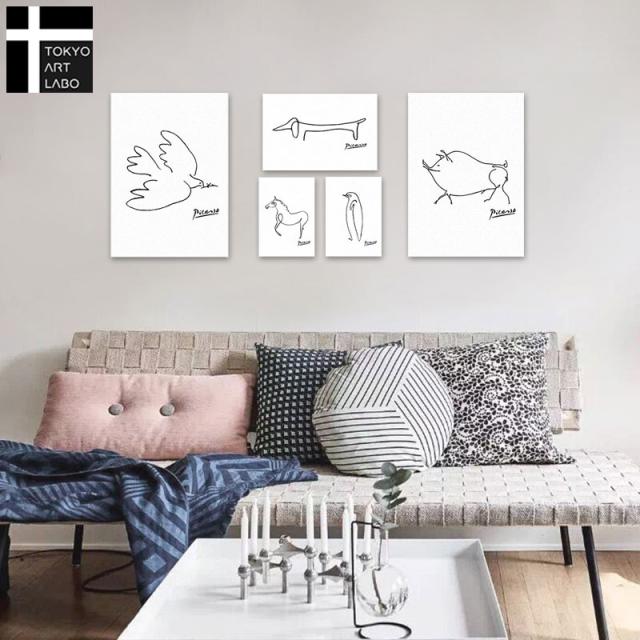 CREA アートパネル ピカソ 5枚セット 壁掛け インテリア 絵画 モダン シンプル デザイン おしゃれ 玄関 リビング 動物 幸運 平和 ハト ぶた 馬 犬 ペンギン ポスター 韓国 母の日