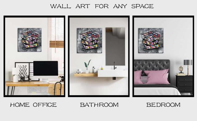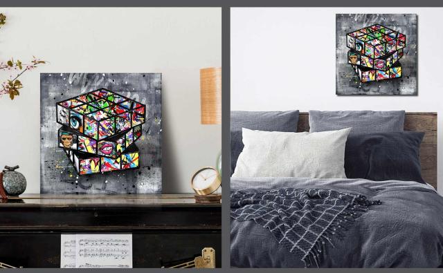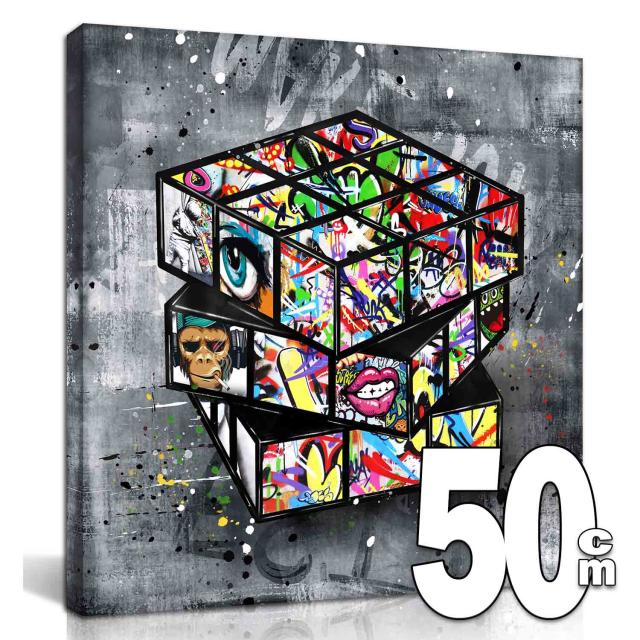ARTJOY MAGIC CUBE BLACK 50cm アートパネル 絵画 インテリア 壁掛け おしゃれ 絵 アート 玄関 リビング 人気 ブランド 北欧 モダン アートボード グレー 赤 黄色 ピンク サル 猿 キューブ 絵 ルービックキューブの絵