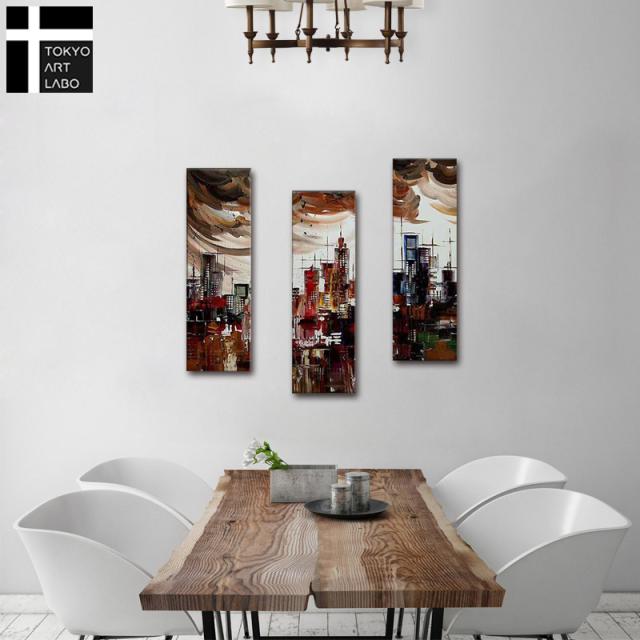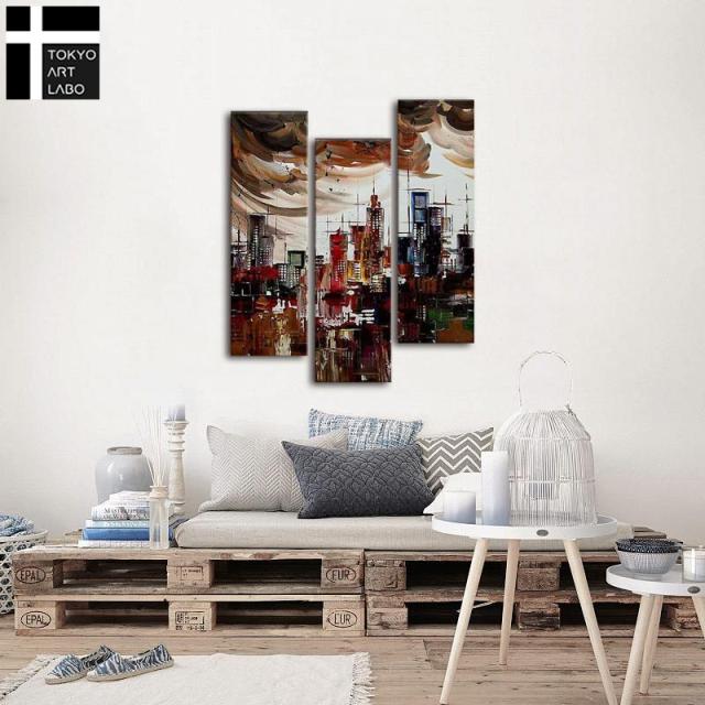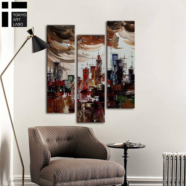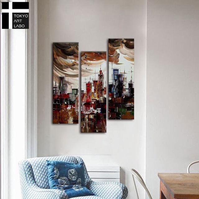 都市の景観 Cityscape 抽象画 3枚組 人気のモダンアート 大きい絵 油絵 壁面装飾 壁絵 モダン