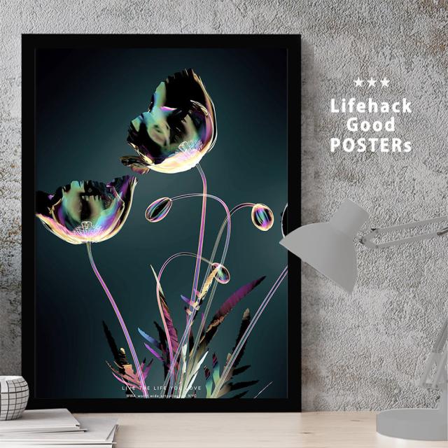 アートフレーム | 高解像度 写真ポスター | アートポスター | A3サイズ フレーム付き | 花 ポピー ケシ Poppy 額入り グラフィックアート モノクロ