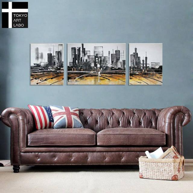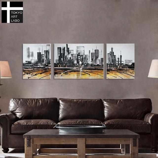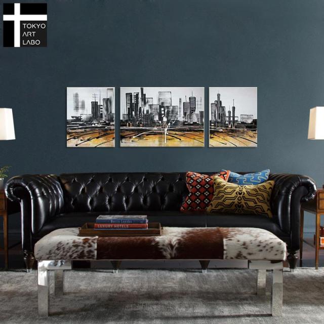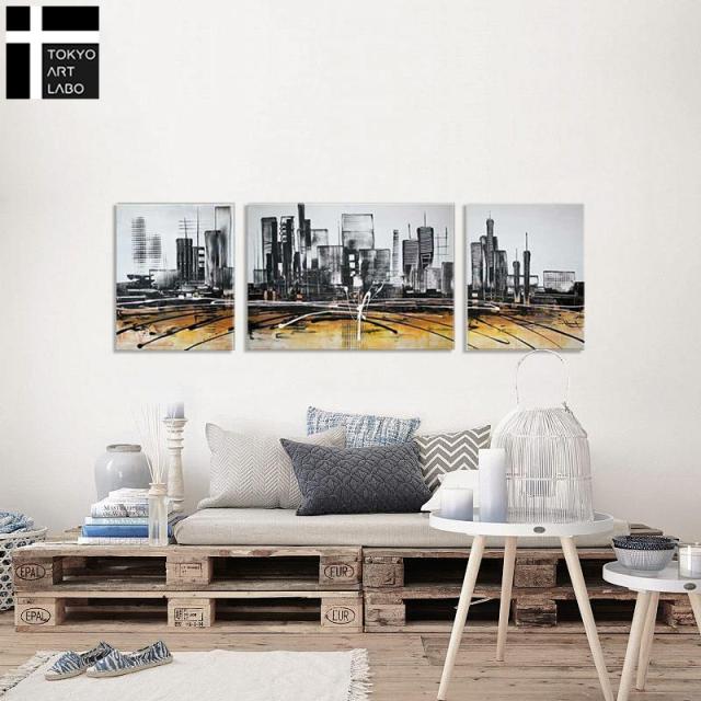 都市の景観 Cityscape 抽象画 3枚組 人気のモダンアート 大きい絵 油絵 壁面装飾 壁絵 モダン 摩天楼 高層ビル(Desert landscape)