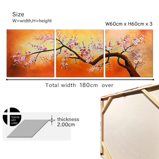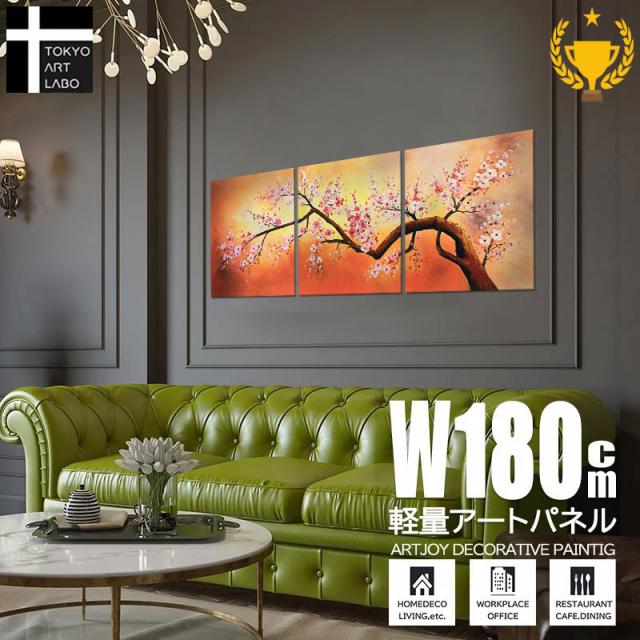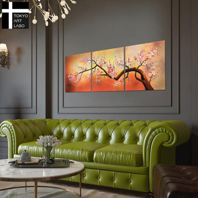 【楽天ランキング1位獲得】絵画 桜 W180cm【初春の山桜】 壁掛け インテリア おしゃれ 油絵 「和を基調に、個性的でお洒落な和モダンアート」大型 油彩画 春 和風 風水 運気 3枚組 60角