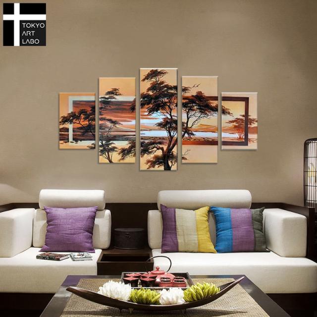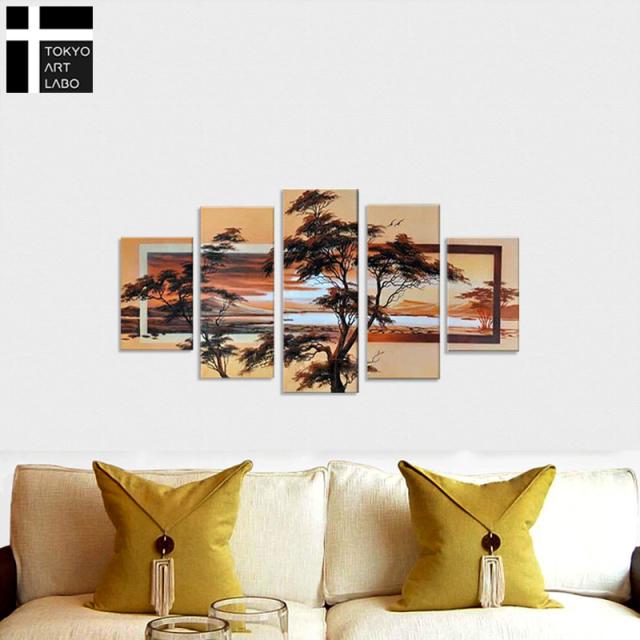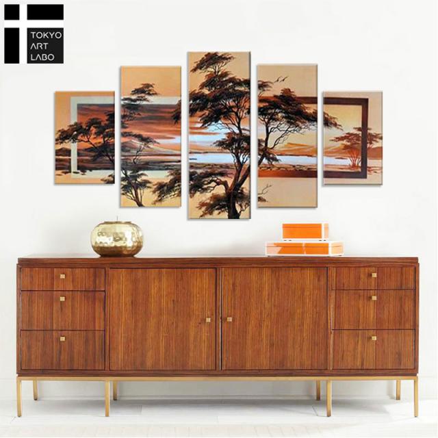 【襖絵のような美しいデザイン】絵画 風景画 人気 インテリア 壁掛け 和モダンアート アートパネル 油絵 和風 和柄 5枚組 油彩画