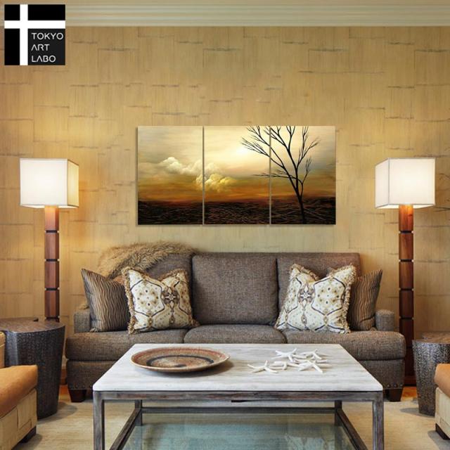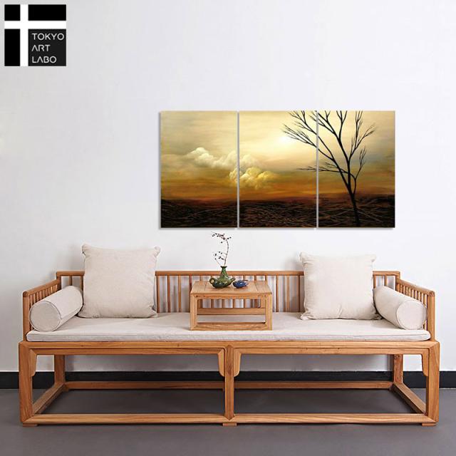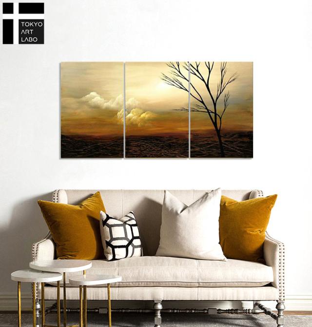 絵画 インテリア 風景画 壁掛け 油絵【追憶1】 W120cm 3枚組 デザイナーズ 抽象 油彩画