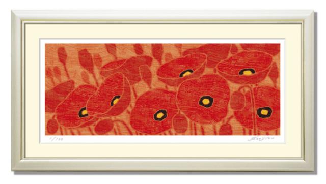 花の絵 絵画 花 おしゃれ 壁掛け 絵 インテリア 【赤い芥子】ポピー 玄関に飾る絵 新居 新築 お祝い プレゼント用 アートフレーム 風水 横長 母の日