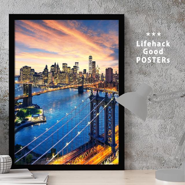 【楽天ランキング1位獲得】アートフレーム | 高解像度 写真ポスター | A3サイズ フレーム付き ブルックリンブリッジ | 風景 インテリア おしゃれ モダン 写真 壁掛け アート フレーム 玄関 リビング