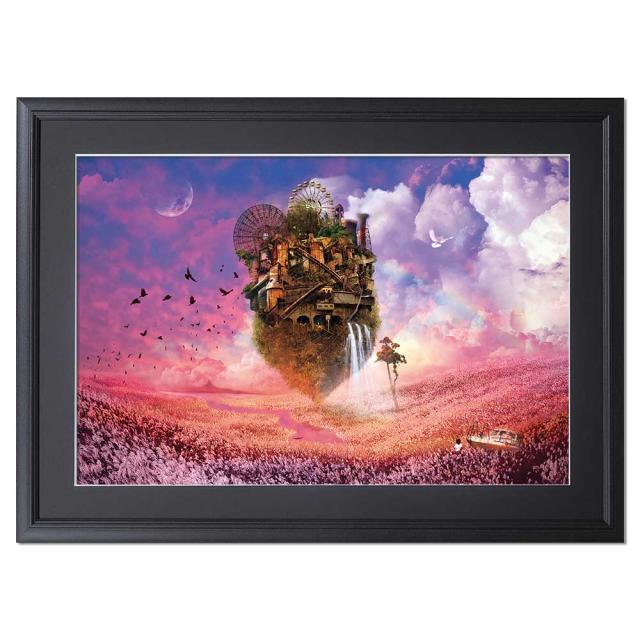 アートポスター「少年と夕暮れヶ丘」フレーム付き 壁掛け 絵 インテリア アートポスター グラフィック コラージュ 実写 額付き『まるでジブリのような世界観』